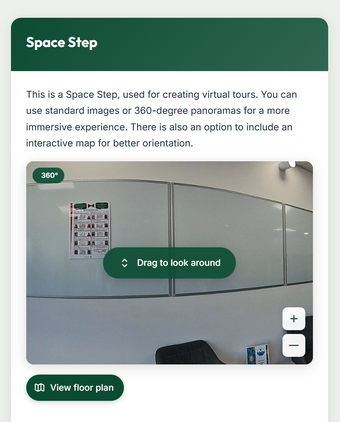 Spatial Training: Use 360 degree panoramas and interactive floor plans with hotspots to show staff the layout of a facility or safety zone before their first shift.